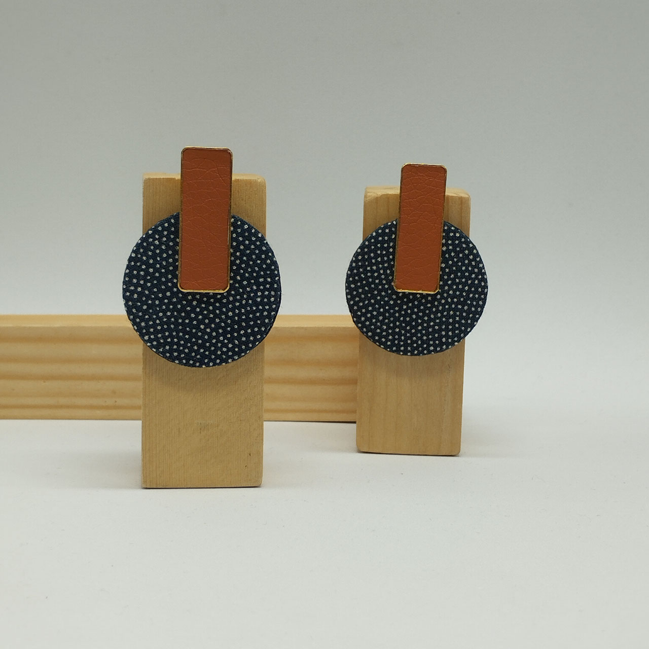 MATERIALS: cotton fabric, faux leather. Stainless steel ear posts.